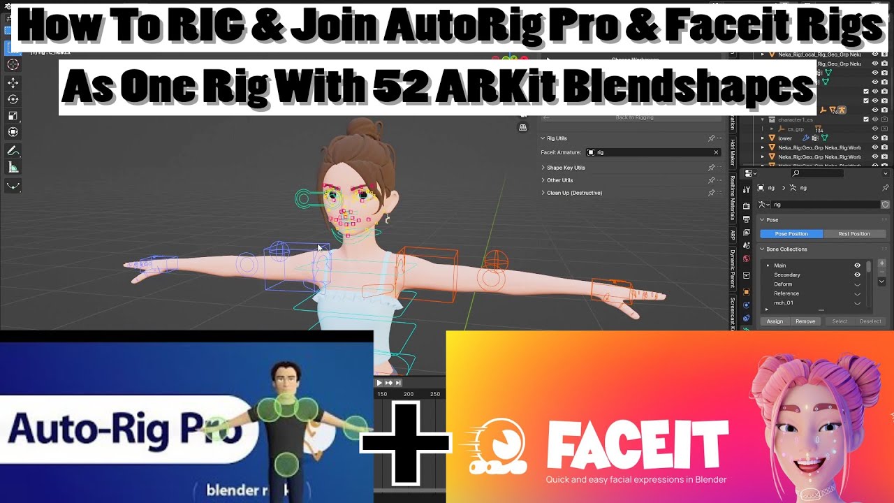 Blenderプラグインのfaceitを試してみました。faceitはARKitなどに対応したシェイプキーを自動で作成してくれます。顔のリグについてはいろいろ試してみましたが、時間がかかりすぎるためアドオンのfaceitの利用することにしました。※このサイトではAuto-Rigと連携しています。